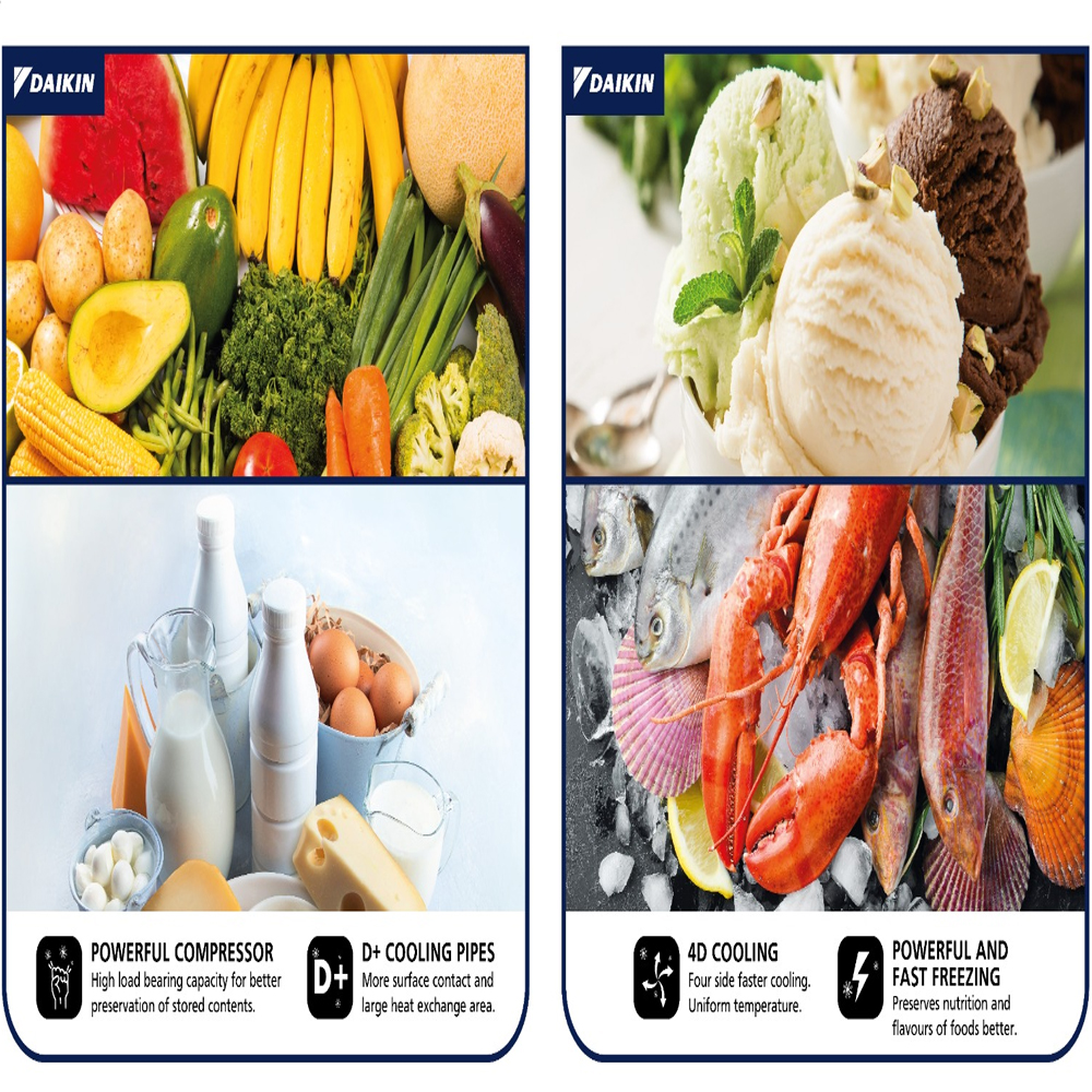 Mega cooling, Mega capacity, approx 15% higher storage capacity.More surface contact and large heat exchange area.Four side faster cooling. Uniform Temperature.Preserve nutrition and flavours of foods better.