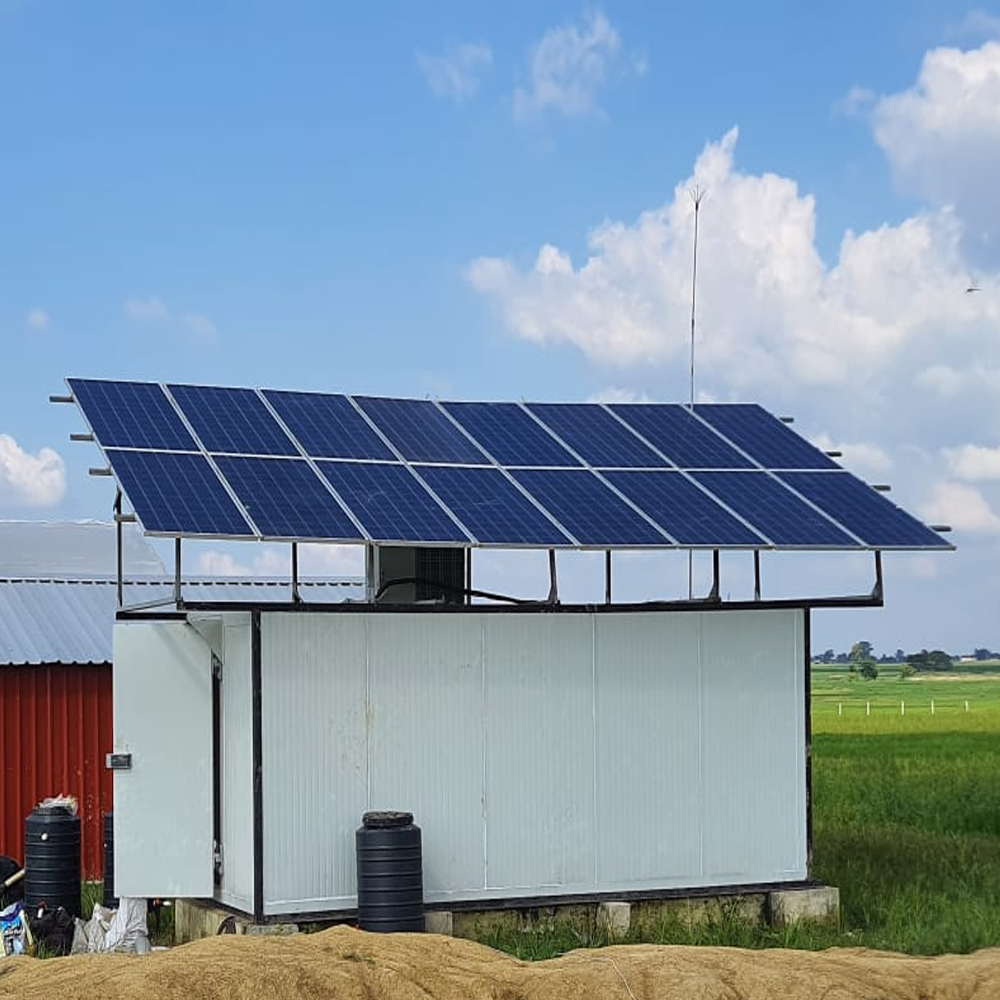 In plain language, the solar-powered cold storage system provides cold storage facility for the safe storage of a wide range of items. It is powered by solar photovoltaic with battery backup. This machine is designed to strike balance between lower grid demand and load shifting throughout peak application.